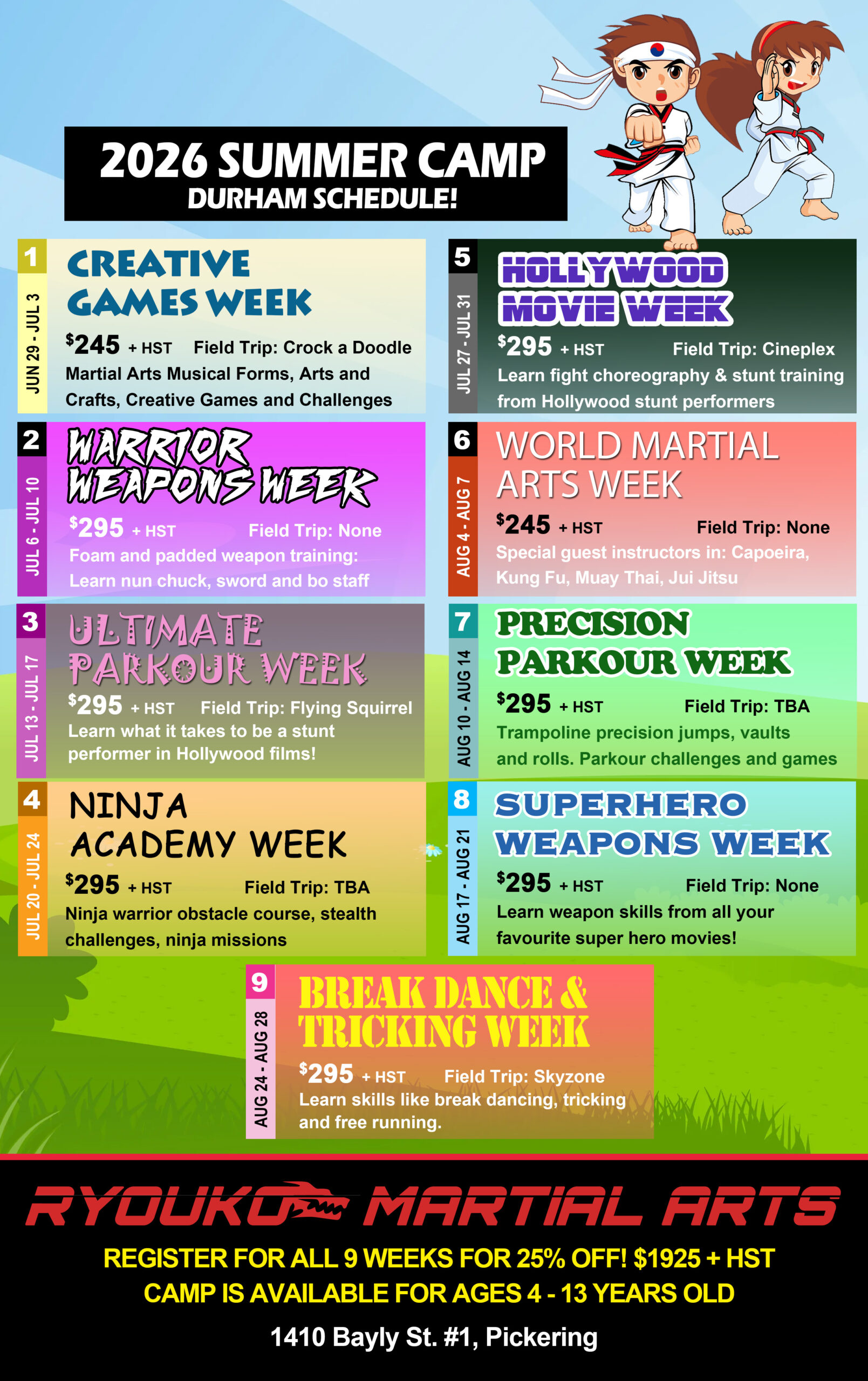 One of the best camps you will attend this year! Every week campers will learn a variety of skills including parkour, gymnastics, taekwondo, field trips and acrobatic skills! They will also participate in fun games, outdoor activities and arts & crafts. Each week will feature a different theme which will keep the campers excited and enrich their experience! Children must bring their own Lunch and Snacks (Peanut Free Food Only)